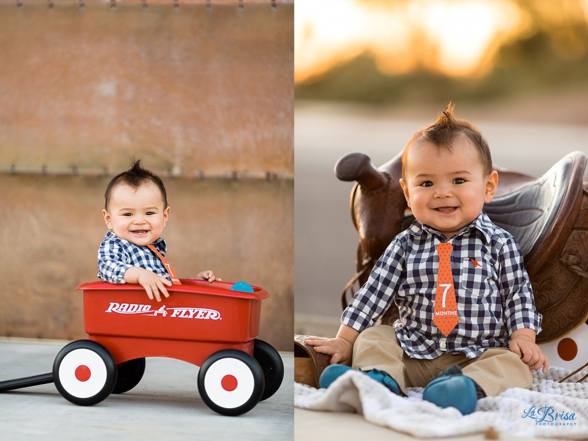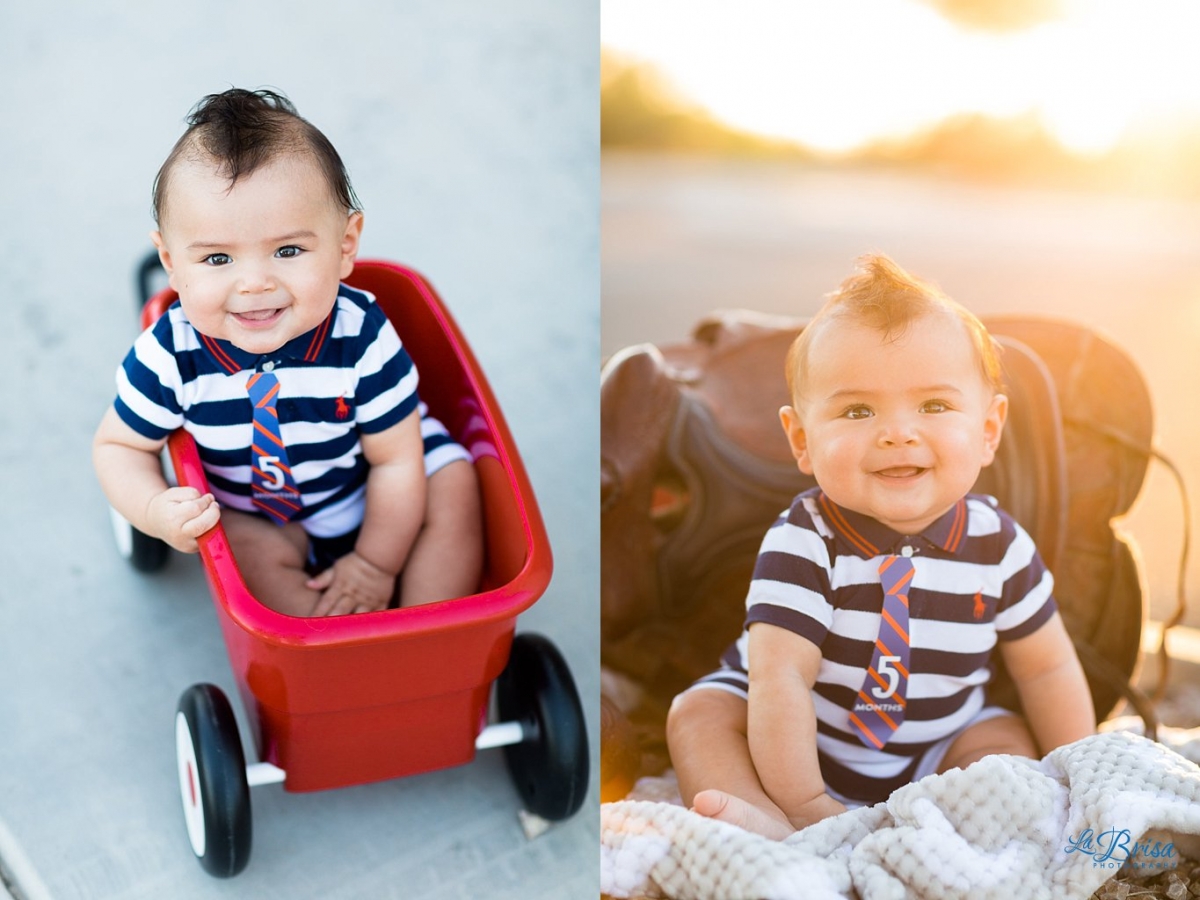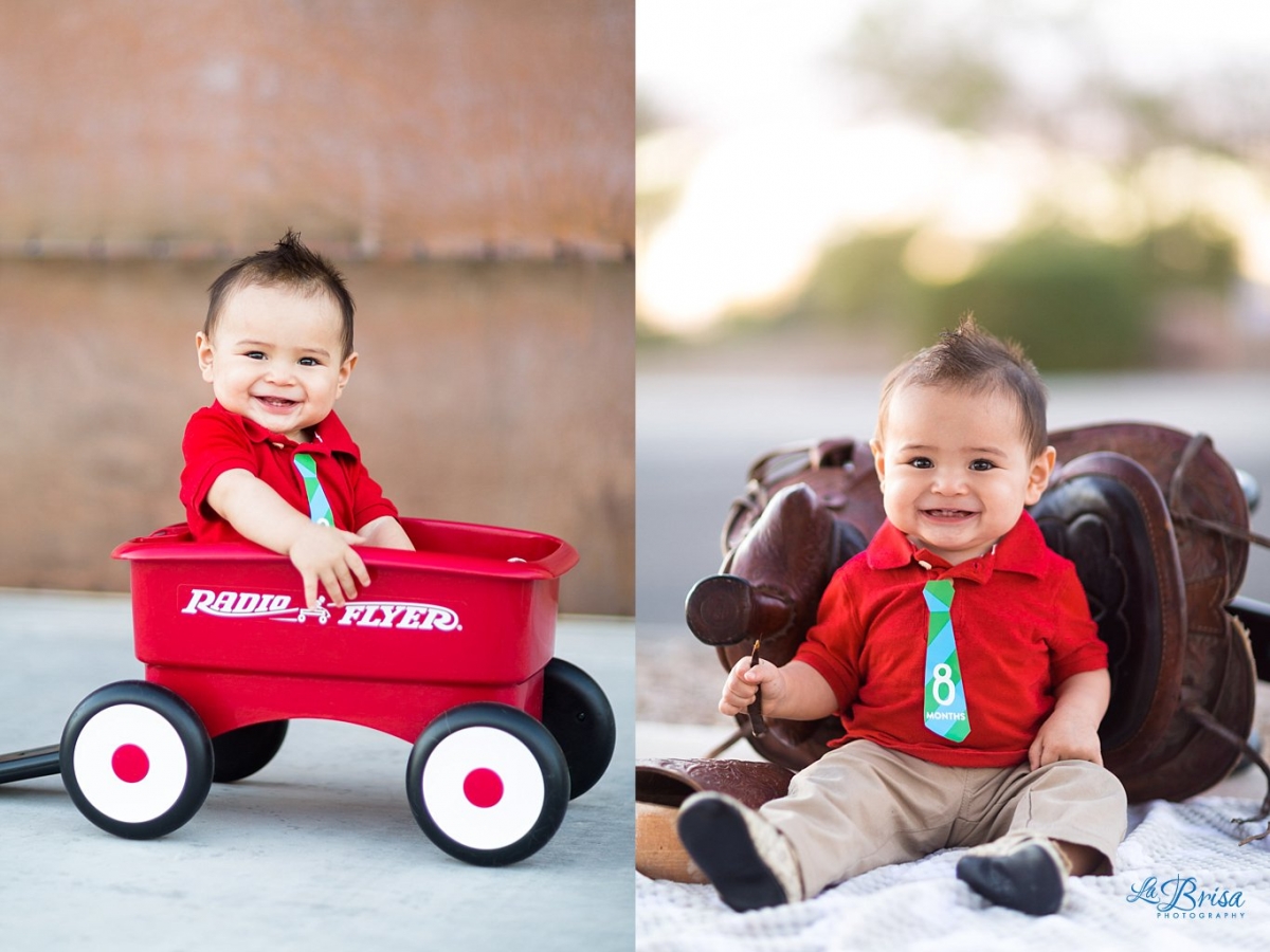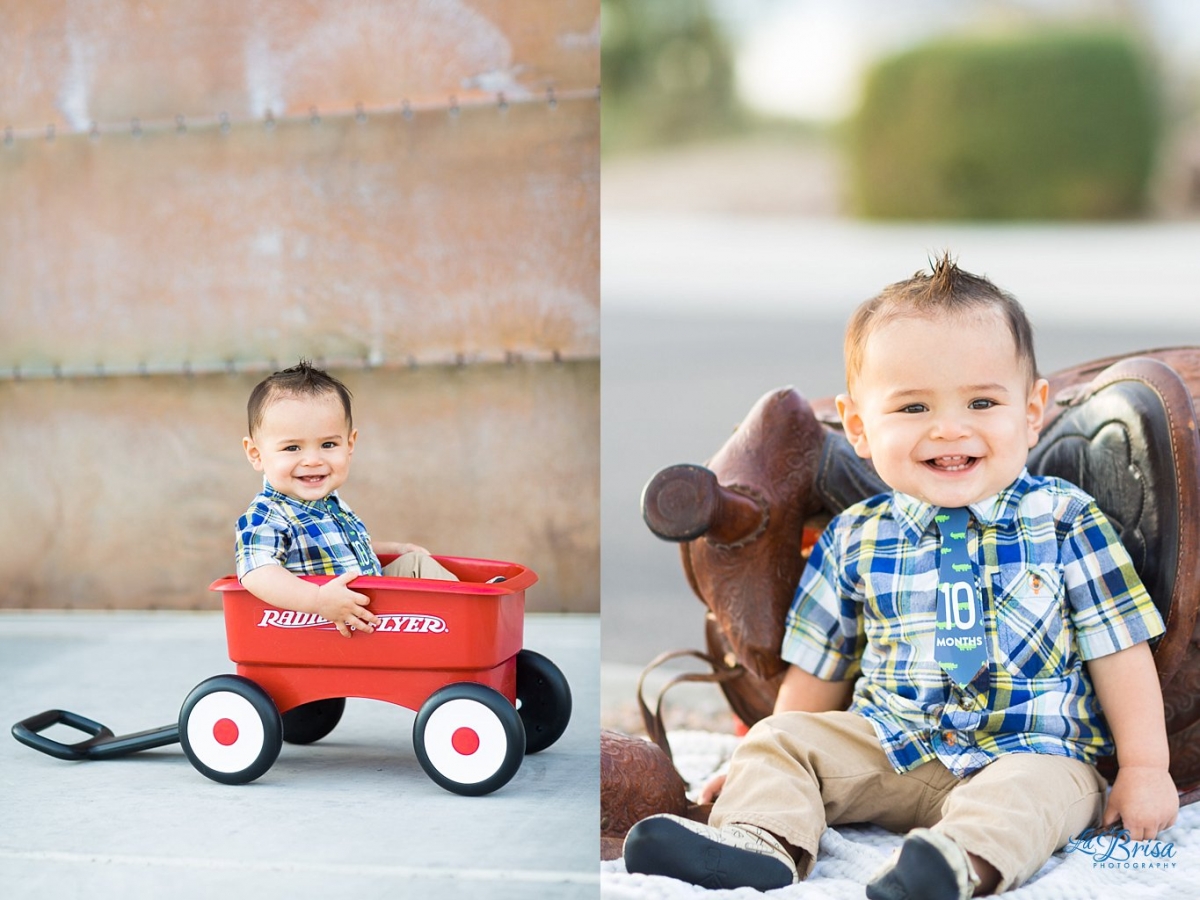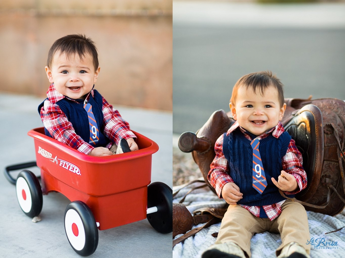 When P was born, Brisa had an idea of photographing him every month (Thanks Joana for the awesome monthly ties!) with his Radio Flyer Wagon (Thanks Janet) and with Brisa’s horse saddle when she was a kid. So every month(ish), Paxton has a little photo shoot with mom jumping up and down while making crazy noises and dad taking photos as quickly as possible. After 10 months, we’ve become incredibly efficient and can complete the shoot in less than 10 minutes though it takes us longer to get P ready for the photos than the actual shoot! I love photographing my little dude (shocking, I know). He just has so much personality and his smile kills me every time. Below, you’ll see just a few of Paxton’s monthly photos from his first 10 months!