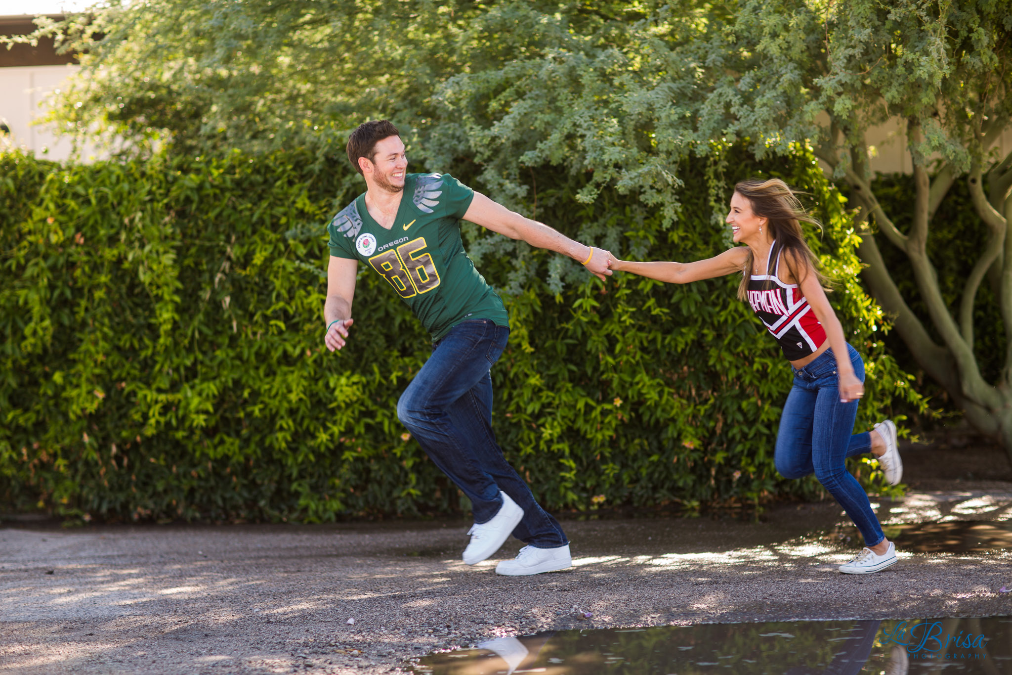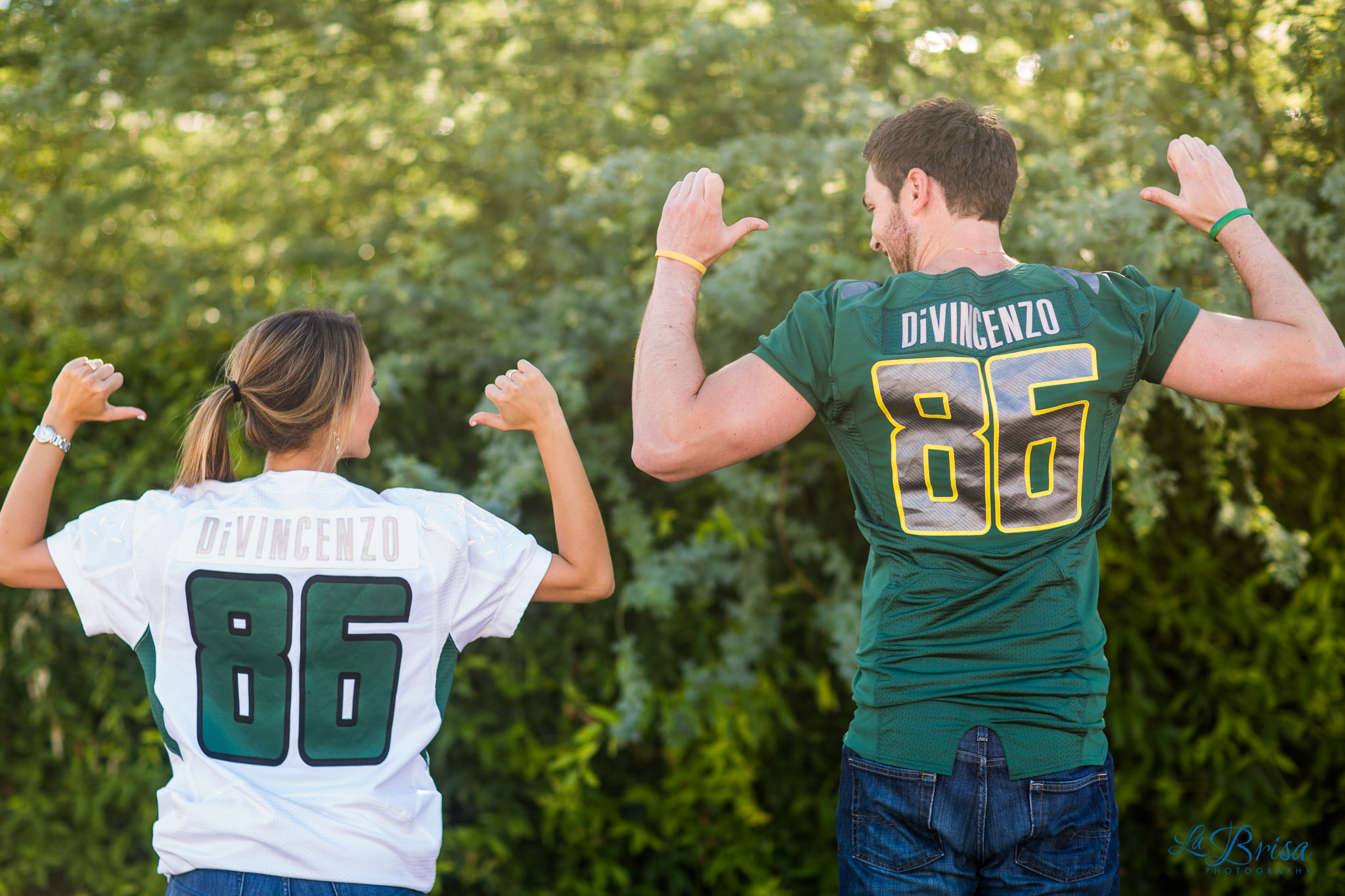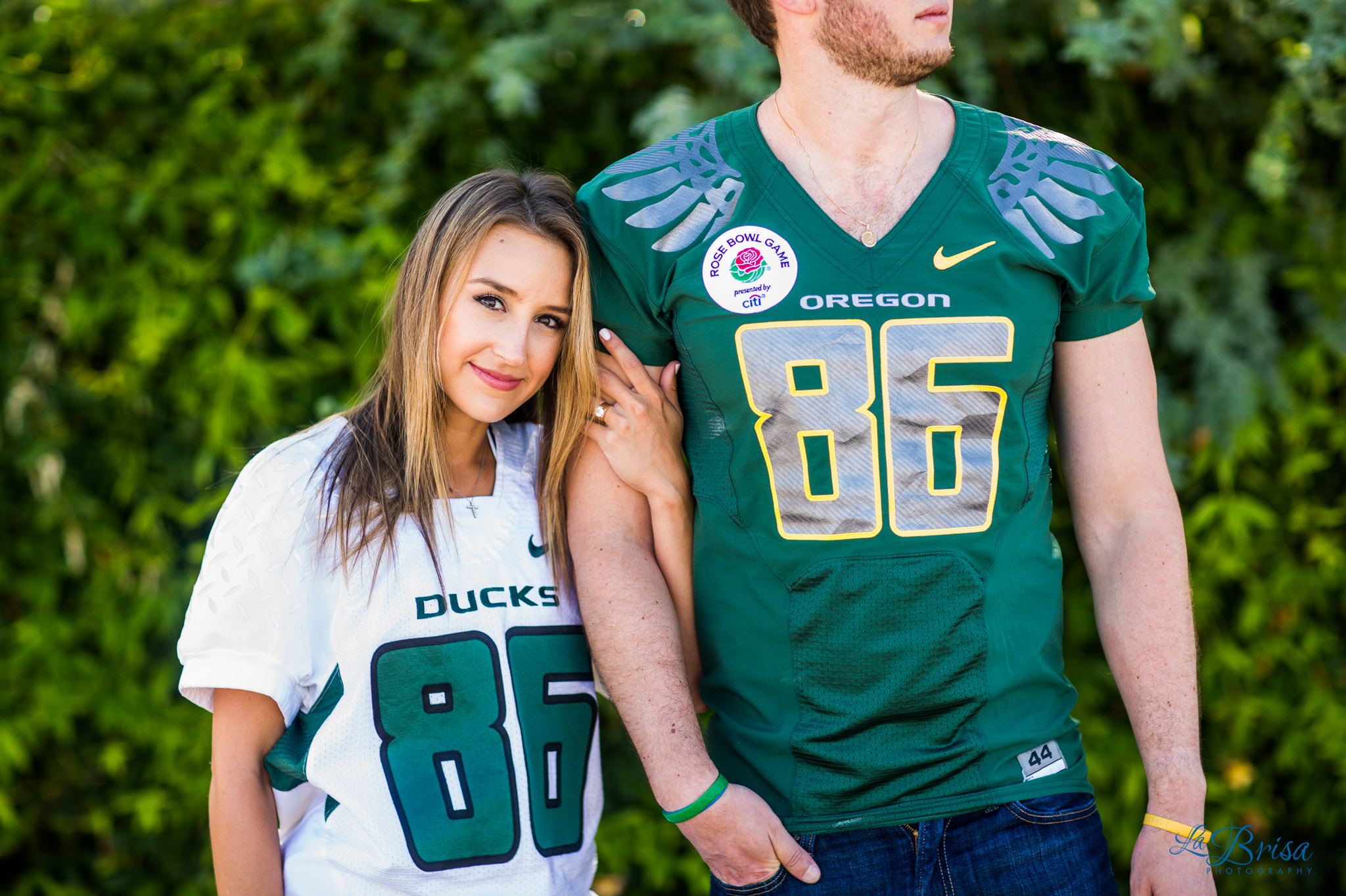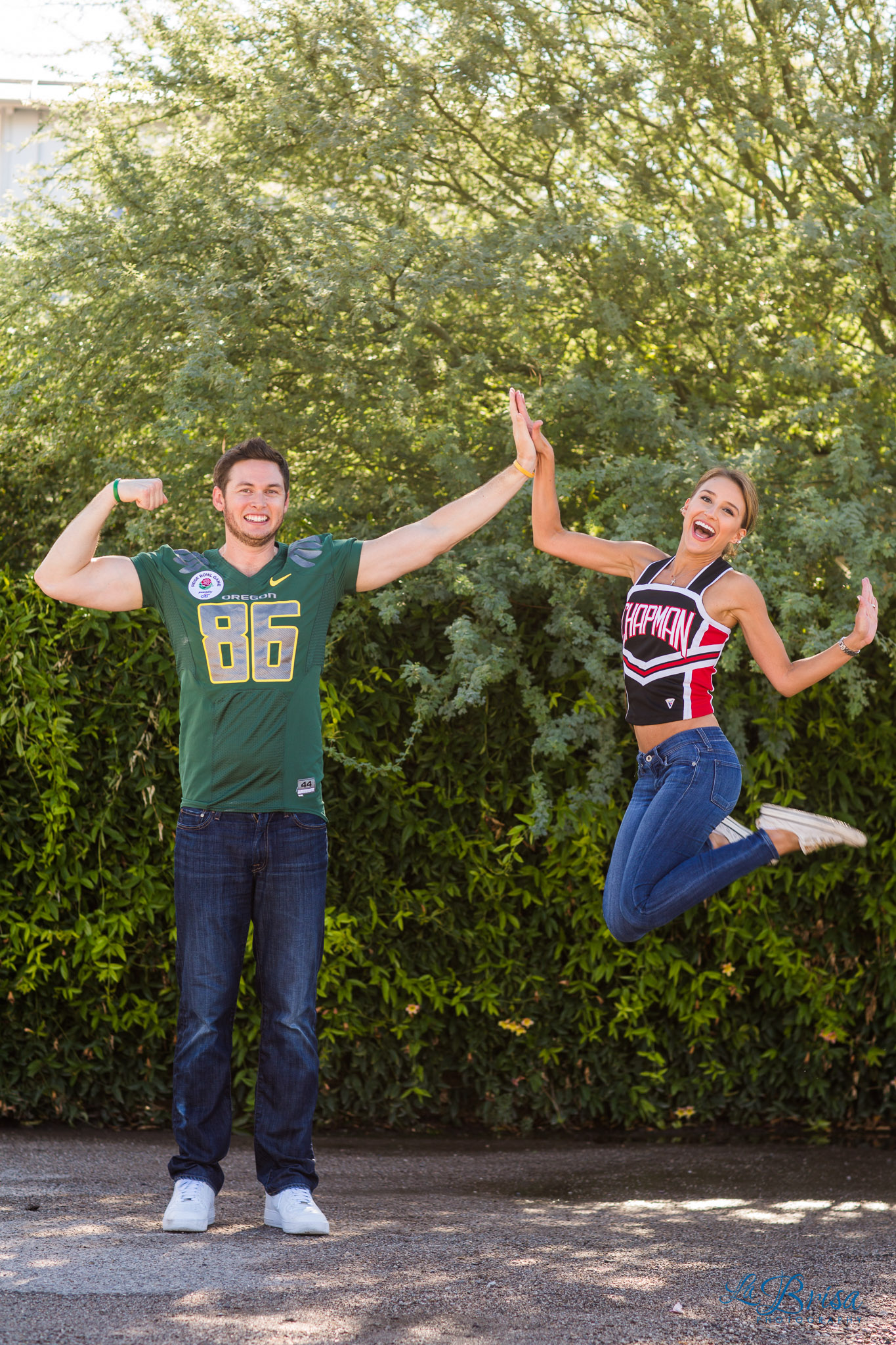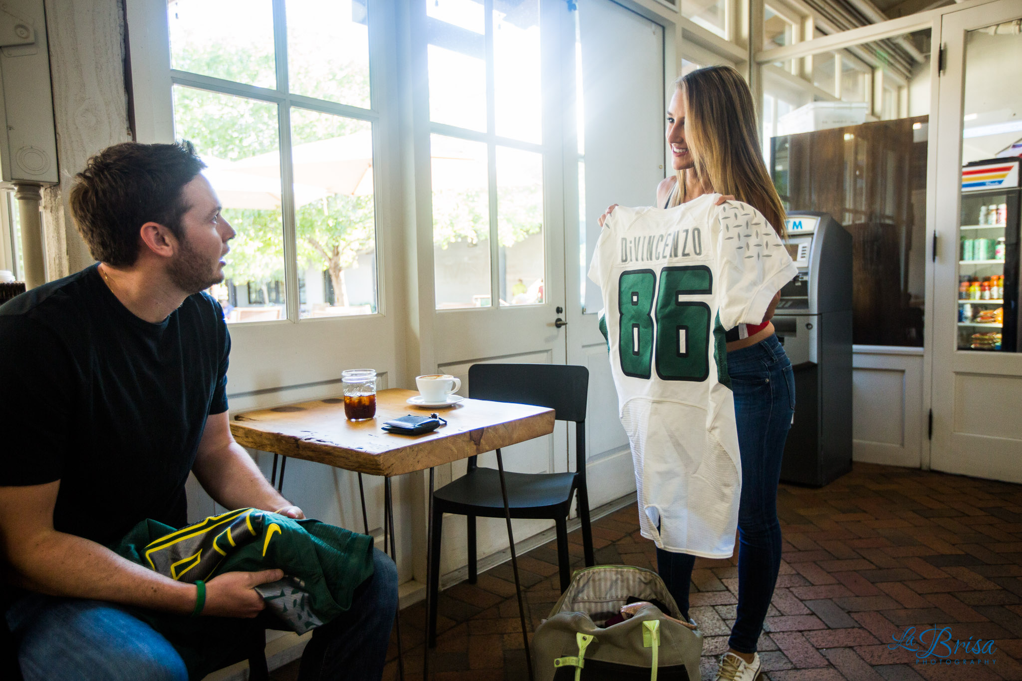 One of my favorite parts of the shoot was when Sam surprised Chris with his game jersey from the Rose Bowl that she purchased from ebay and hid from him for the past 6 months! Chris had the best shocked reaction!