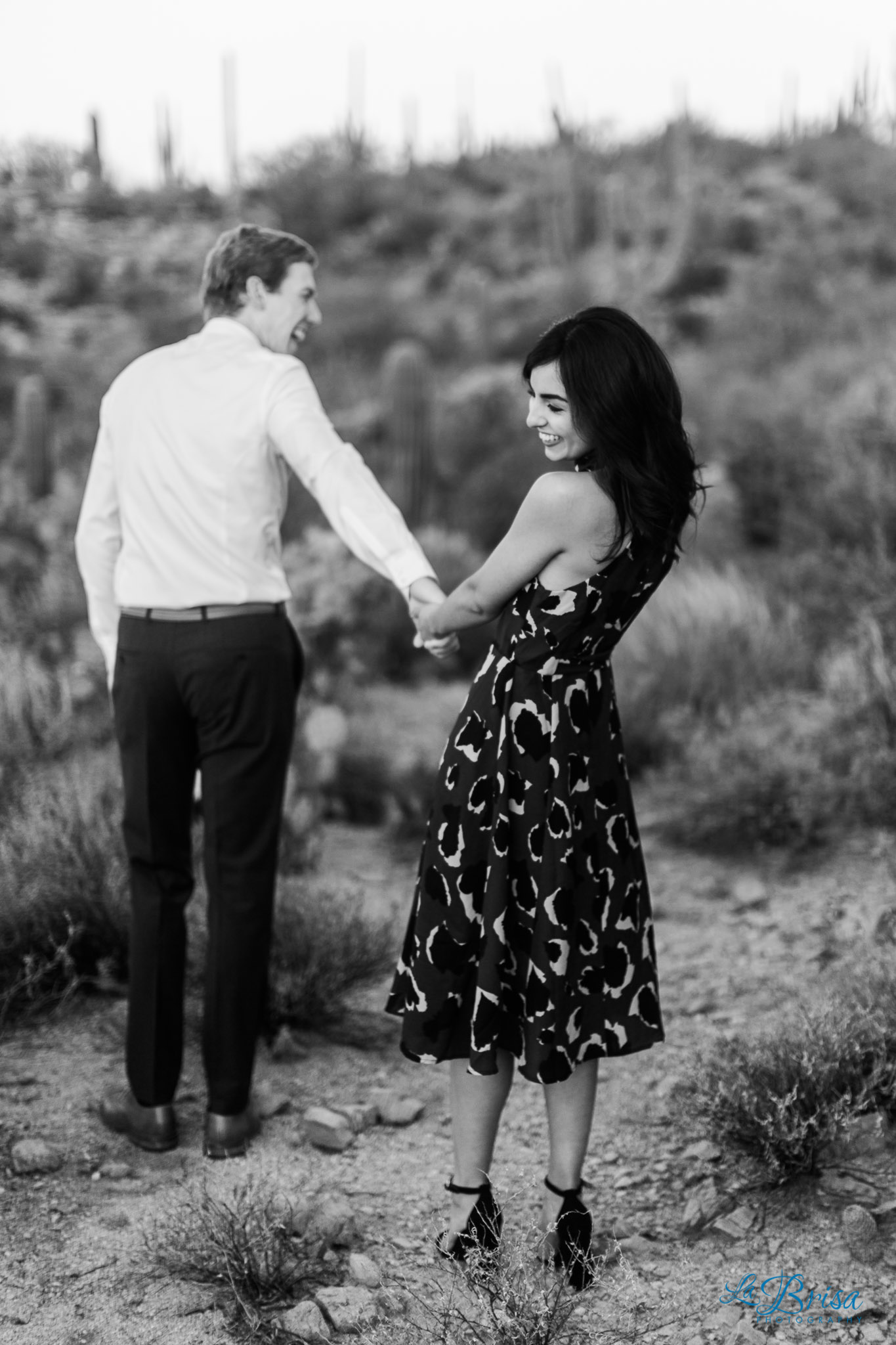 I started their sunrise Attraction Session in the desert. Kelly’s dress really popped against the subtle pre-dawn colors of the environment. While Kelly and Eric were internally freezing, they outwardly looked warm and joyous! =)